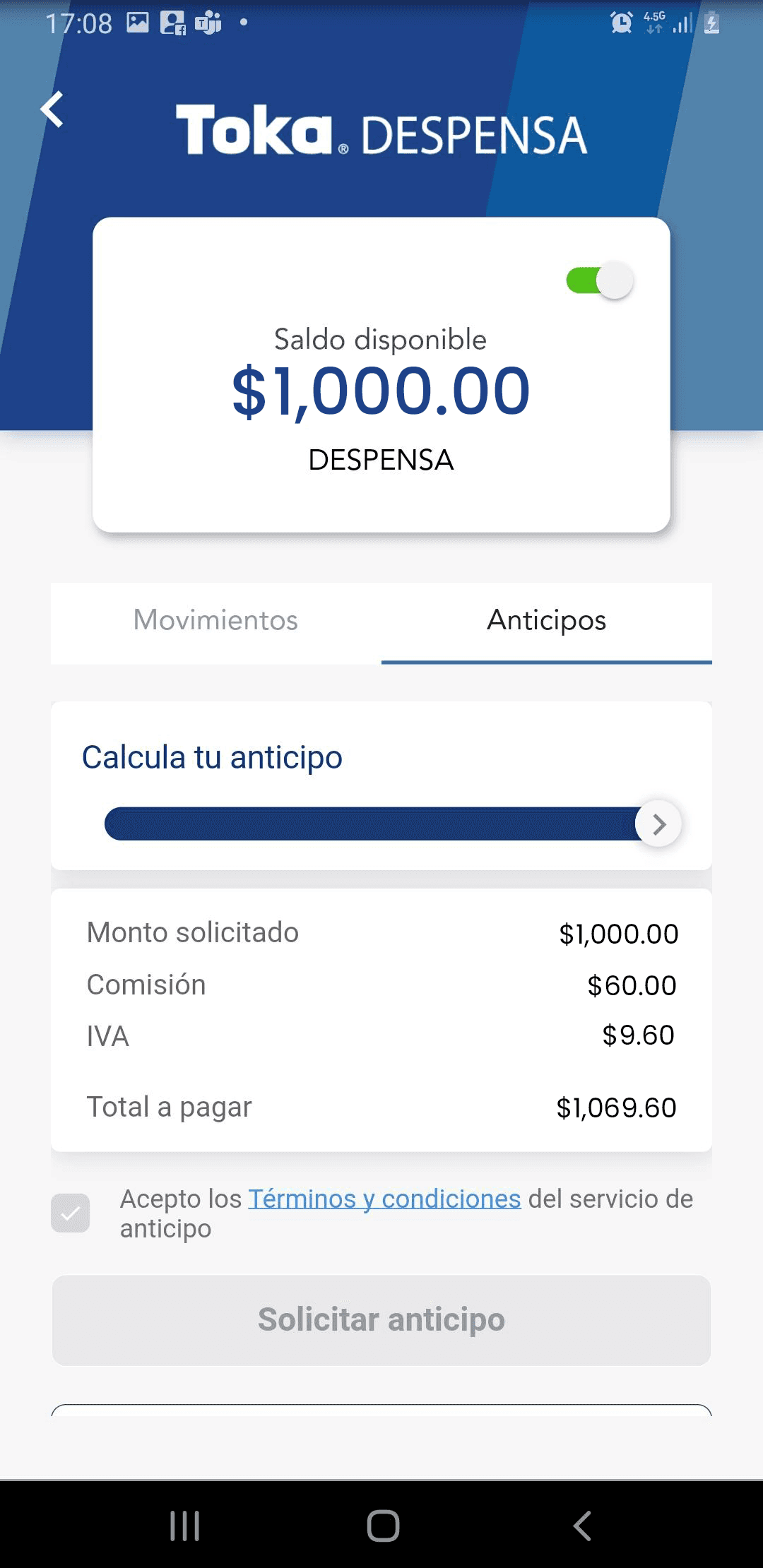 Tu anticipo está a unos cuantos clics de distancia. Solicítalo y resuelve al instante desde tu app Toka Internacional