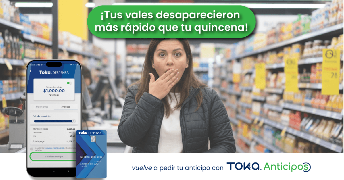Vuelve a solicitar tu anticipo Toka DESPENSA desde la app y sigue llenando tu carrito sin preocupaciones